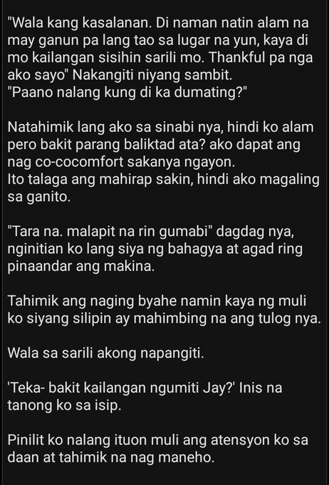 Bat ba kasi di pa siya umalis sa pagkakadagan sa akin. Hindi ko alam ano na ba dapat ang aking gawin. Wala kang magawa kasi wala ka namang karapatan.