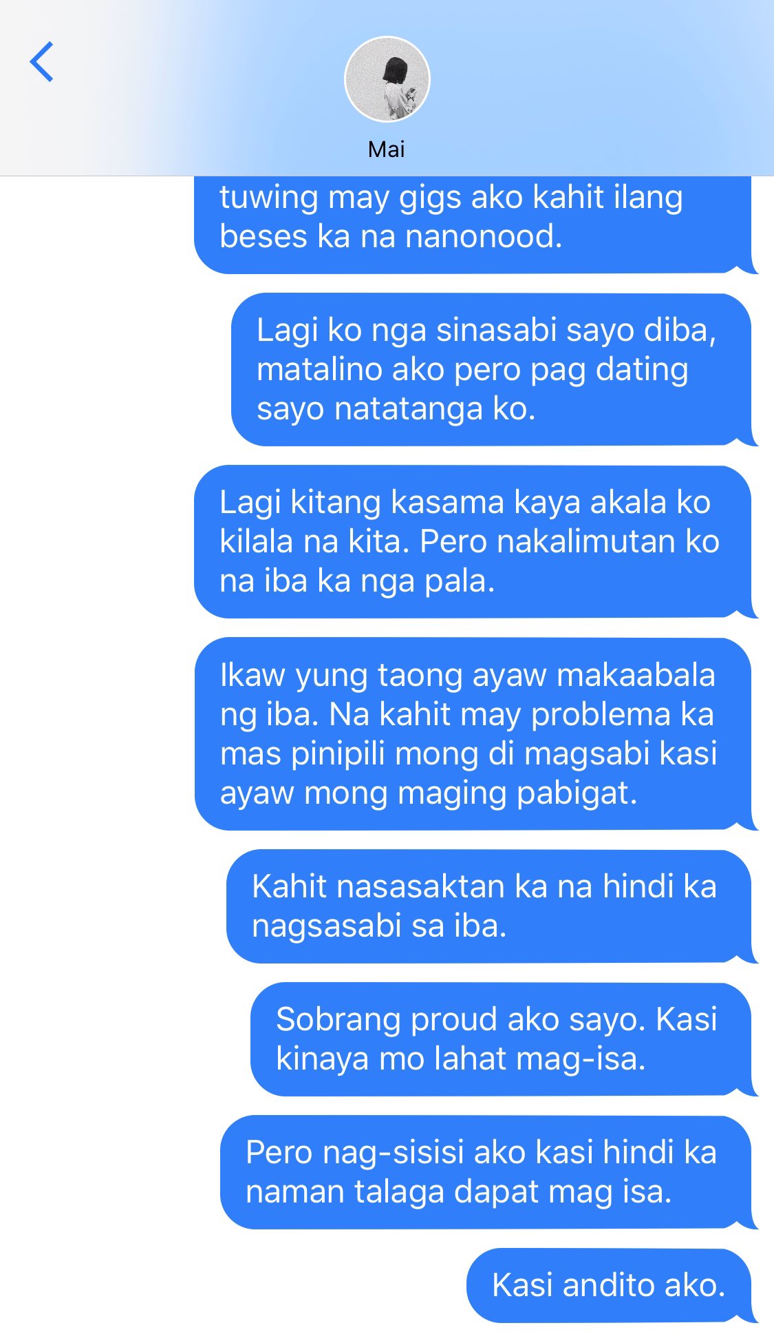 Kung ayaw nila sayo ako na lang. Not hard we love you so much. Ok lang he replied.